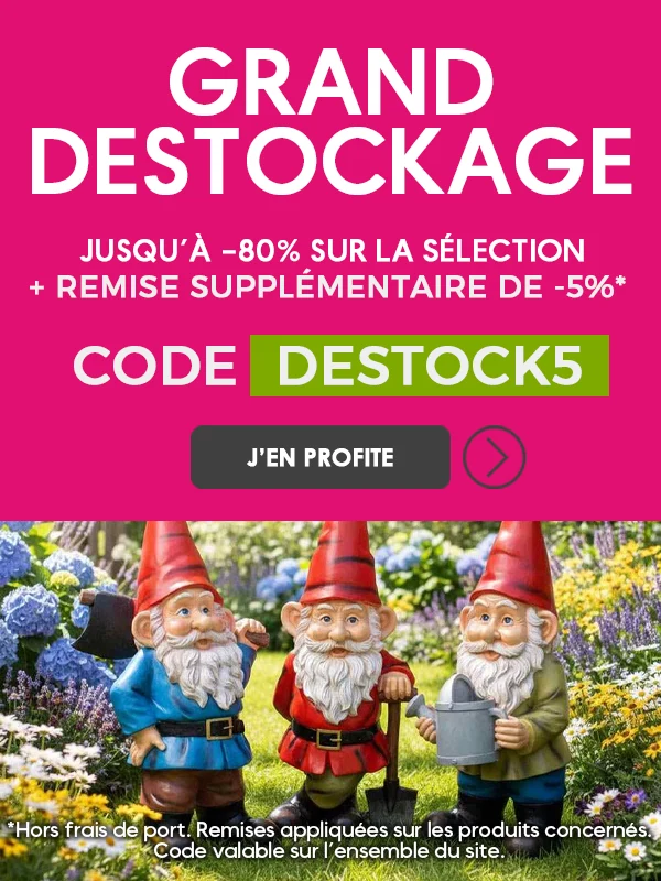 Lors de votre visite sur Jardindeco.com, nous recueillons des données (cookies) à des fins de mesure d'audience, et d'efficacité de campagnes publicitaires. Ces données nous permettent d'améliorer votre expérience d'achat sur le site. Nous les avons classées en catégories, et vous pouvez sélectionner celles que vous souhaitez accepter ci-dessous. Certains cookies à usage interne sont nécéssaires au bon fonctionnement de ce site et ne sont pas désactivables. Nous utilisons également un outil de mesure d'audience interne exempté de consentement. Pour en savoir plus sur le recueil, le stockage et l'utilisation faite de vos données, consultez notre Notification relative à la protection des données.
