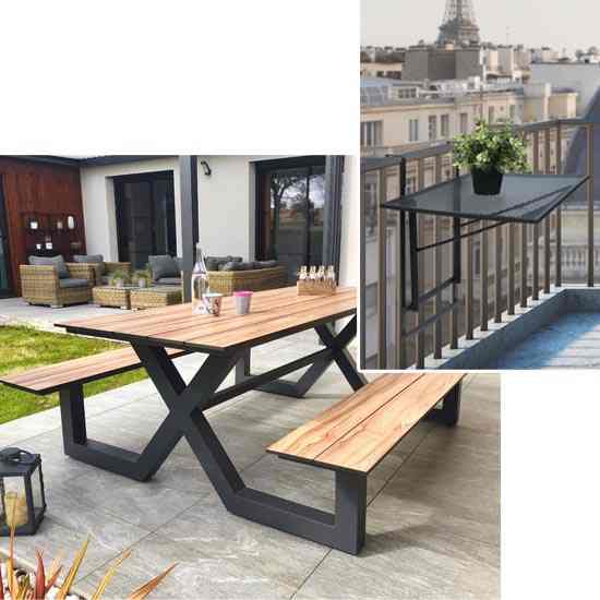 Pour faciliter le rangement en hiver, certains de ces salons de jardin dinatoires avec bancs sont entièrement pliables.