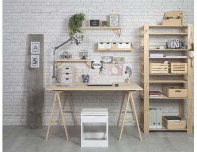 En pin brut ou massif, les tréteaux de bureau en bois peuvent facilement être peints de la couleur de votre choix et ainsi être assortis à votre plan de travail pour créer un meuble bureautique unique.