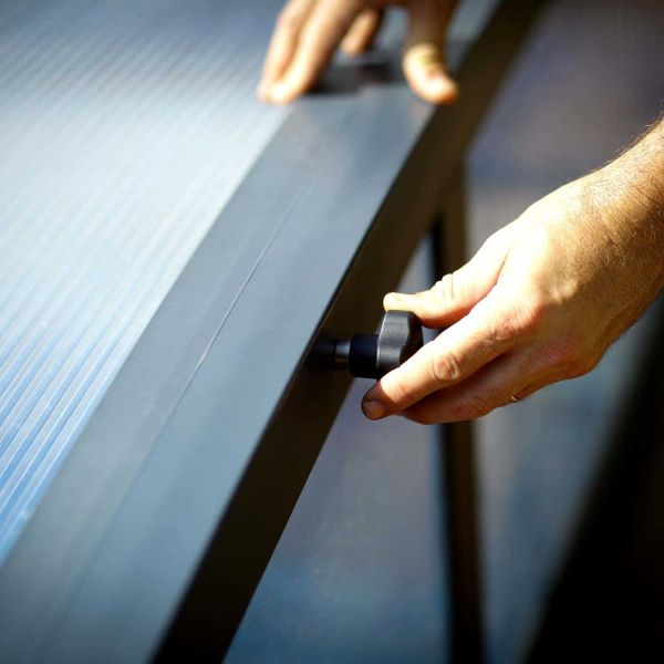Sécurise et protège votre piscine – en conformité avec la norme de sécurité française NF P90-309 ; S’ouvre complètement au-delà du bord de la piscine ; Système sans rail ; Peut être facilement manipulé par une seule personne ; Résistant aux vents jusqu'à 100 km/h et jusqu’à 50 kg/m² de neige