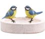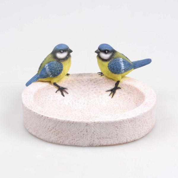 Bain oiseau en résine avec oiseaux 20 x 15 x 10.5 cm (Mésange charbonnière)
