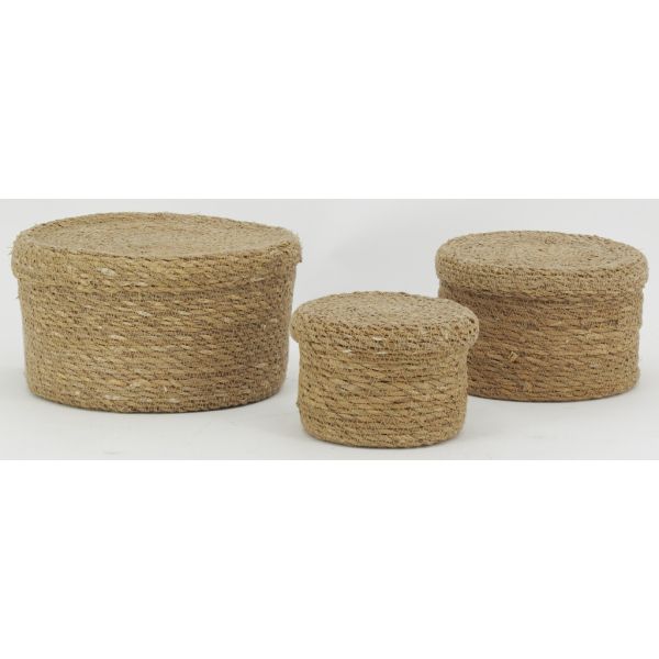 Boites rondes en jonc naturel (Lot de 3)