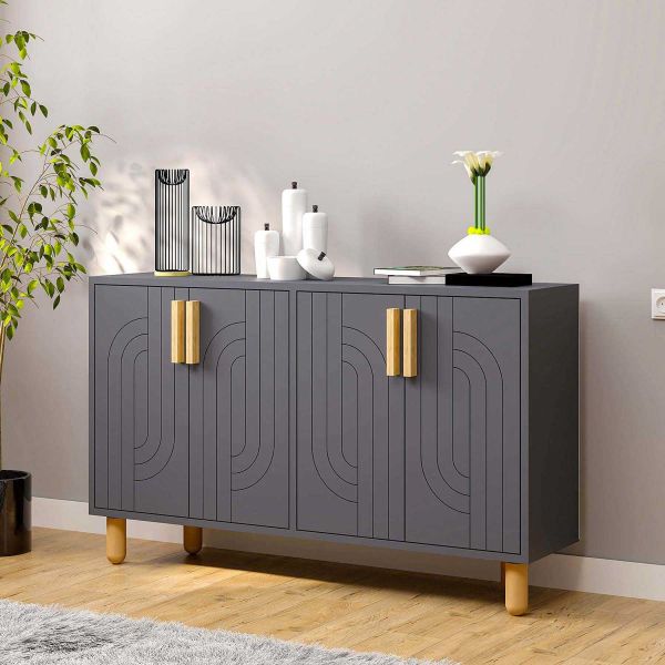 Buffet 4 portes en aggloméré Rodney (Anthracite)