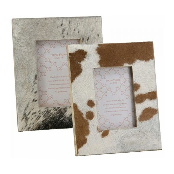 Cadre photo en manguier recouvert de peau de chèvre. Pour photo de 13 x 18. S'agissant de peaux de chèvres véritables, chaque pièce est unique et nos photos ne peuvent être contractuelles.