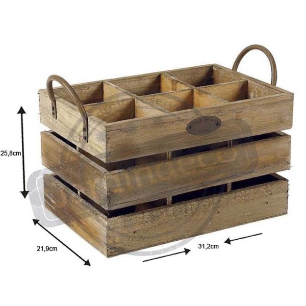 Caisse de rangement 6 bouteilles anses métal