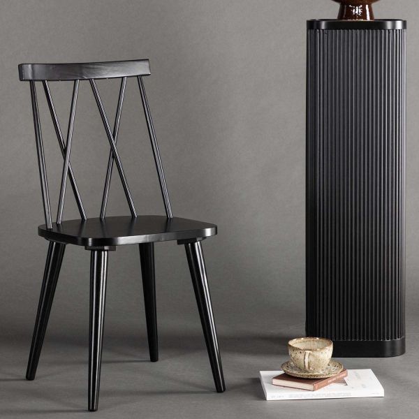 Chaise en bois d'hévéa Mariette (Lot de 2) (Noir)