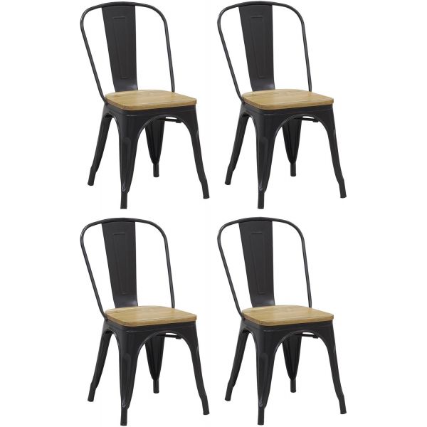 Chaise industrielle en métal et bois d'orme huilé (Lot de 4) (Noir)