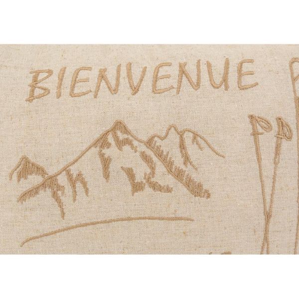 Transformez votre intérieur en un havre de sérénité montagnarde avec ce magnifique coussin en lin naturel. Orné d’un décor brodé beige et du texte "Bienvenue à la Montagne", ce coussin combine élégance et fonctionnalité. Sa housse déhoussable et son garnissage en fibre polyester garantissent un confort optimal et un entretien facile.
