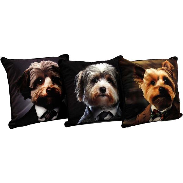 Coussin imprimé chiens Fluffy 45 x 45 cm (Lot de 3)