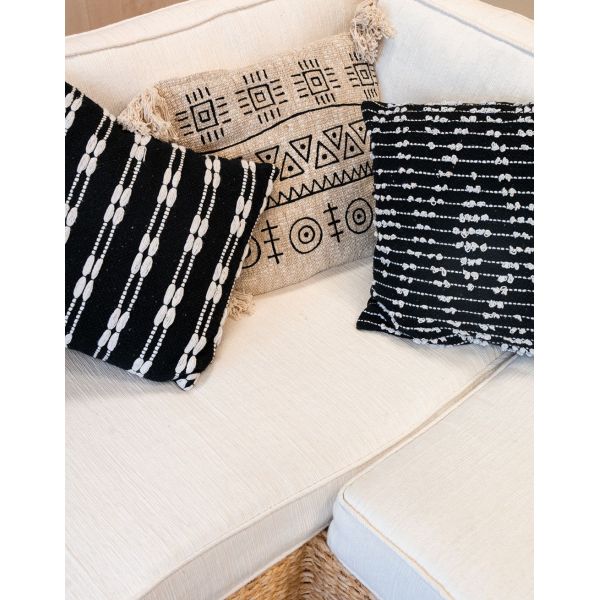 Craquez pour cet ensemble de 2 coussins en coton noir et naturel aux motifs graphiques. Ce lot se compose de 2 coussins de forme carré de taille 45 x 45 cm. Les coussins sont garnis 100% polyester et leur housse en coton est dotée d'un zip permettant de les déhousser.