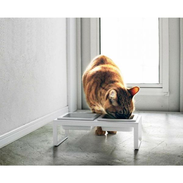 Double gamelle design surélevée pour chat Tower (Blanc)