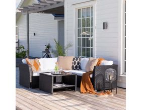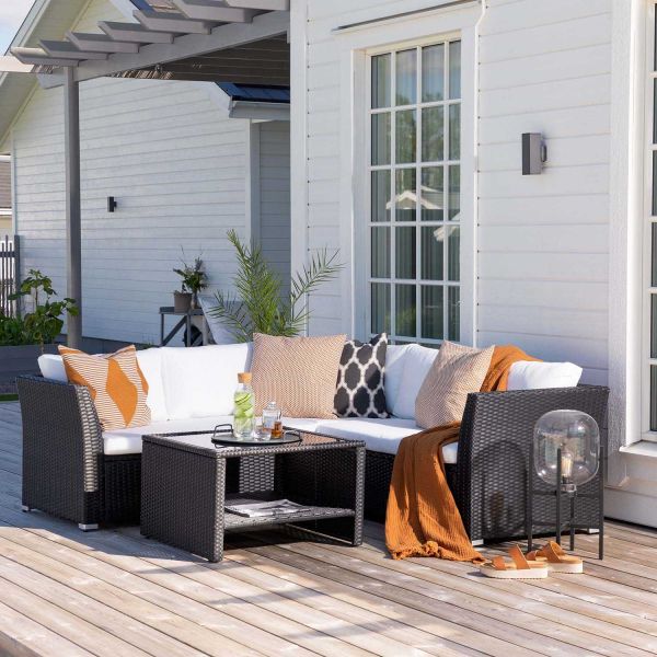 Ensemble canapé d'angle et table basse en résine tressée Haiti (Noir et beige)