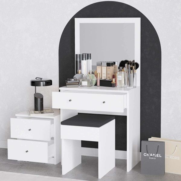 le tabouret manque de solidité, un contreventement serait judicieux, le miroir mériterait d'être encastré dans le mélaminé