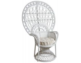 Fauteuil Emmanuelle en rotin laqué blanc avec coussin