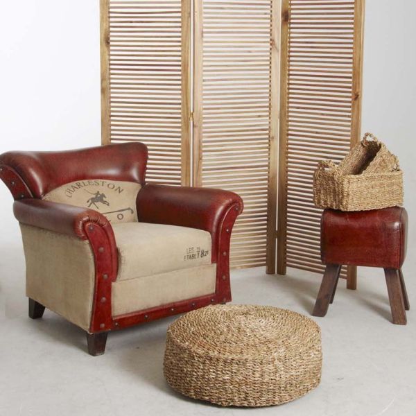 Fauteuil en coton et cuir de buffle Charleston polo