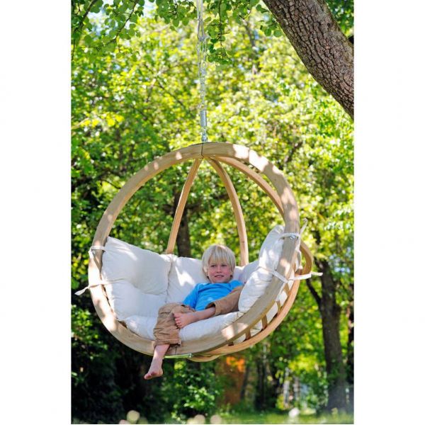 Le fauteuil suspendu Globo chair va plaire à toute la famille ! Ce fauteuil rond en bois s’installe en intérieur comme en extérieur pour une détente parfaite. Fabriquée en épicéa résistant aux intempéries, cette Chaise balancelle est confortable avec son coussin écru doux et rembourré. Le modèle sphérique Globo Chair est idéal pour se reposer. Il s’agit d’un ensemble de couches de bois d’épicéa très stable et résistant aux intempéries. Le Globo Chair dispose d‘un grand coussin rembourré et moelleux (lavable) qui le rend très confortable. Contient un ressort à spirales. Amazonas utilise, dans le cadre de ses processus de fabrication des produits, du bois issu de forêts européennes gérées durablement. La gestion forestière se réfère aux critères du FSC (Conseil de Soutien de la Forêt).