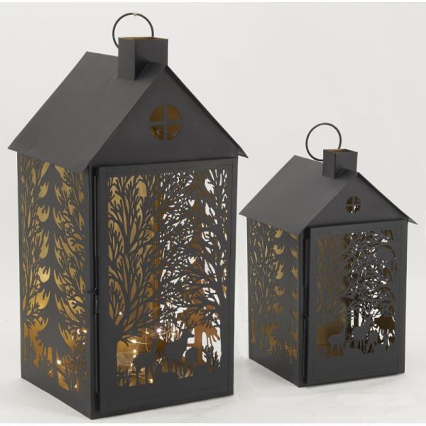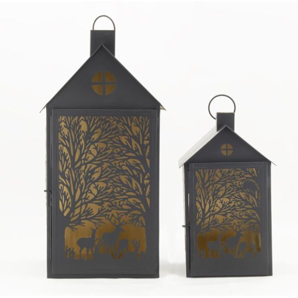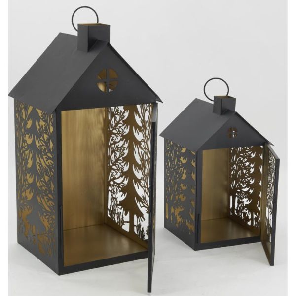 Lanternes en métal noir Maison Cerf (lot de 2)