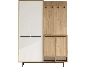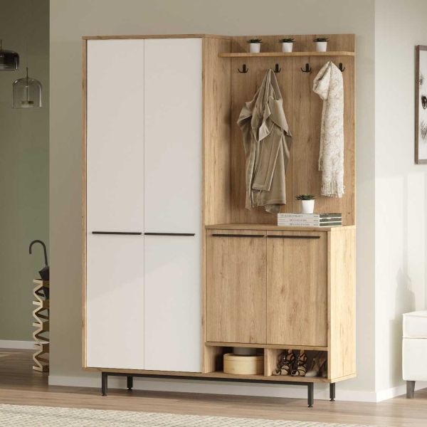 Meuble d'entrée avec placard à chaussures et patères Sylvie (Marron, Blanc)