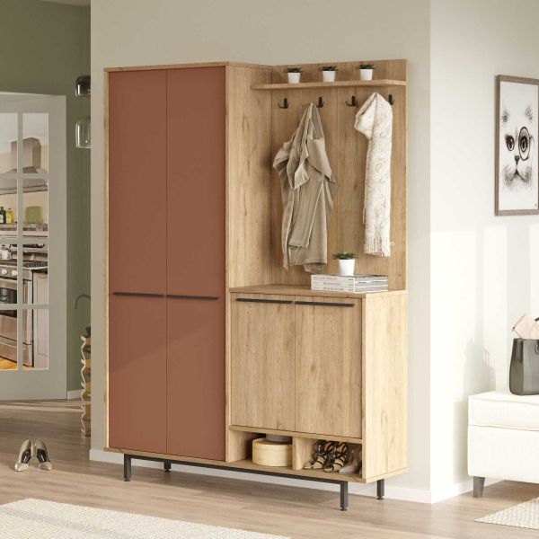 Meuble d'entrée avec placard à chaussures et patères Sylvie (Marron, Terracotta)
