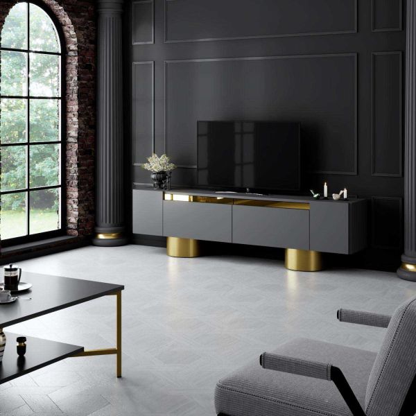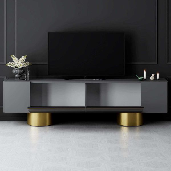 Meuble TV en aggloméré et métal Bohem (Anthracite et Doré)
