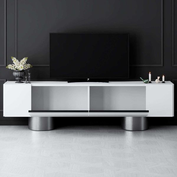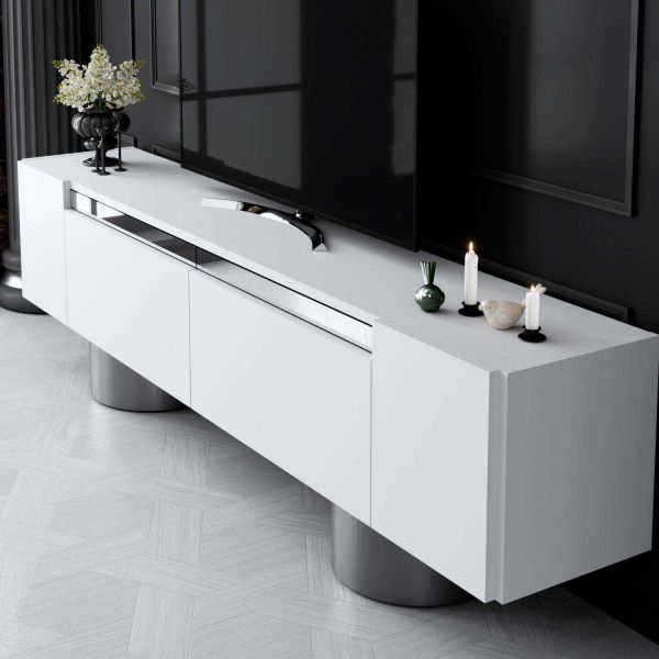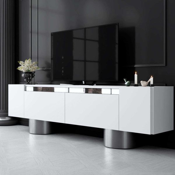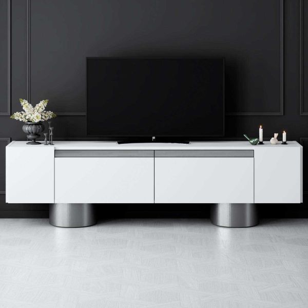 Meuble TV en aggloméré et métal Bohem (Blanc et Argenté)