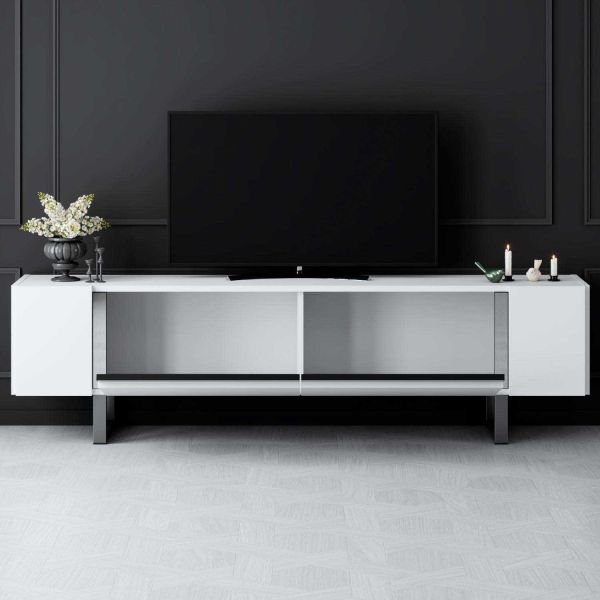 Meuble TV en aggloméré et métal Yildiz (Blanc et Argenté)