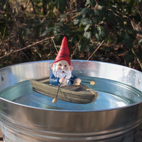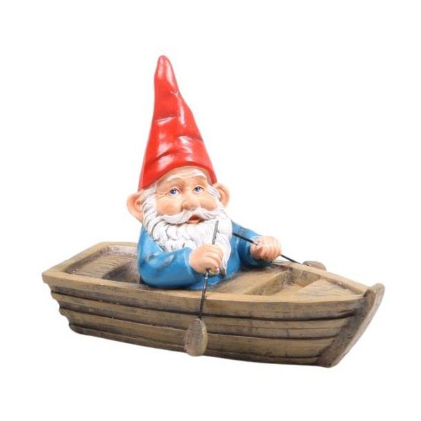 Nain de jardin en résine ballade sur l'eau (Barque assis)