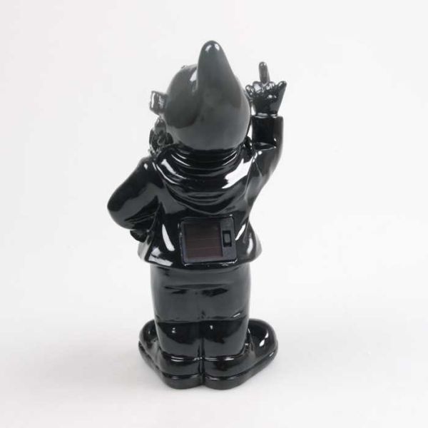 Nain de jardin en résine F*ck avec éclairage solaire 16 x 12 x 31 cm (Noir)
