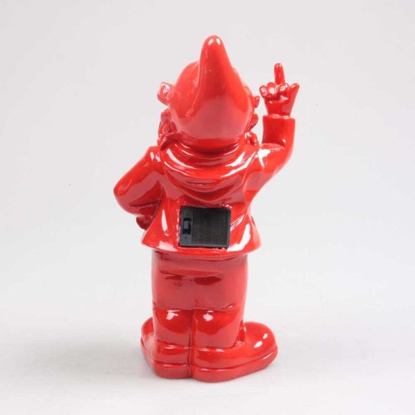 Nain de jardin en résine F*ck avec éclairage solaire 16 x 12 x 31 cm (Rouge)