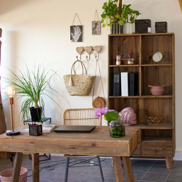 Apportez une touche déco à votre entrée avec cette patère de chez Aubry Gaspard. Sculpté dans du bois de manguier, cet accessoire pratique offre un espace de rangement à votre intérieur. Accrochez-y sac, manteau, foulard, chapeaux. Cette patère peut très bien s’installer dans une cuisine.
