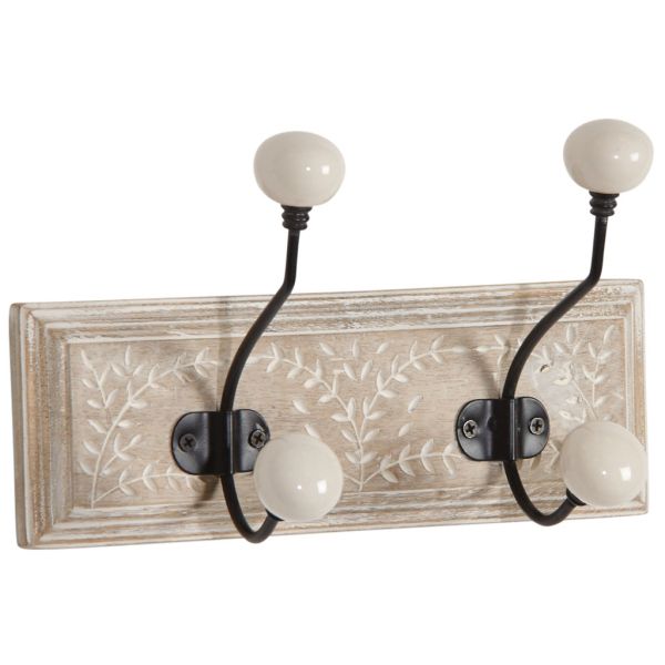 Patère en manguier motif feuilles 2 crochets (2 crochets)