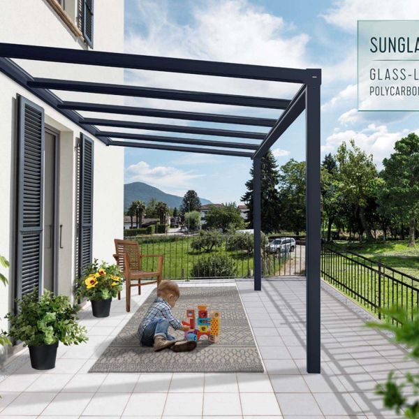 Pergola à adosser en aluminium gris et polycarbonate Stockholm (3.4 x 3.7 m)