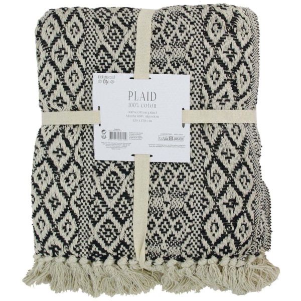 Plaid ethnique à carreaux avec franges 120 x 150 cm