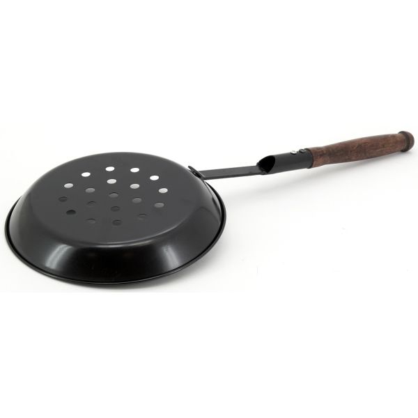 Percée de trous pour une cuisson parfaite, cette poêle en acier présente une finition noire. Son manche long de 35 cm en bois foncé est idéal pour cuire vos châtaignes et marrons sur la cheminée sans vous brûler. Son revêtement résistant et durable est spécialement adapté aux très hautes températures et à la cuisson sur braises.