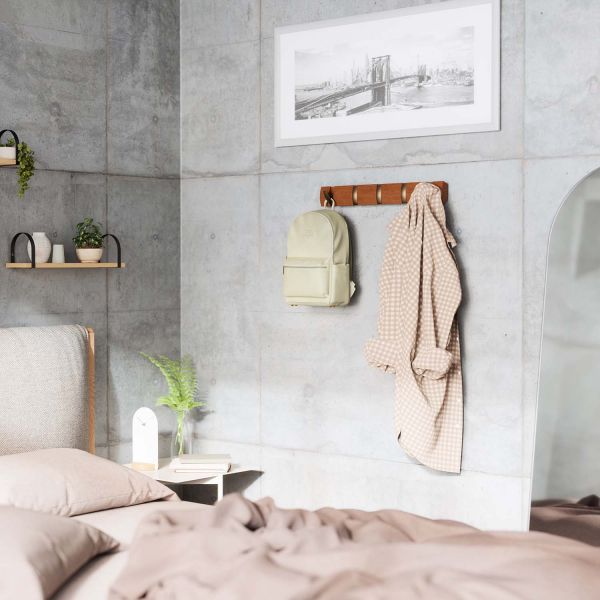 Porte manteaux Flip 5 crochets (Noyer clair et doré)
