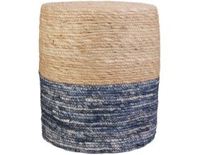Pouf jonc de mer blue lagoon (Naturel et bleu)
