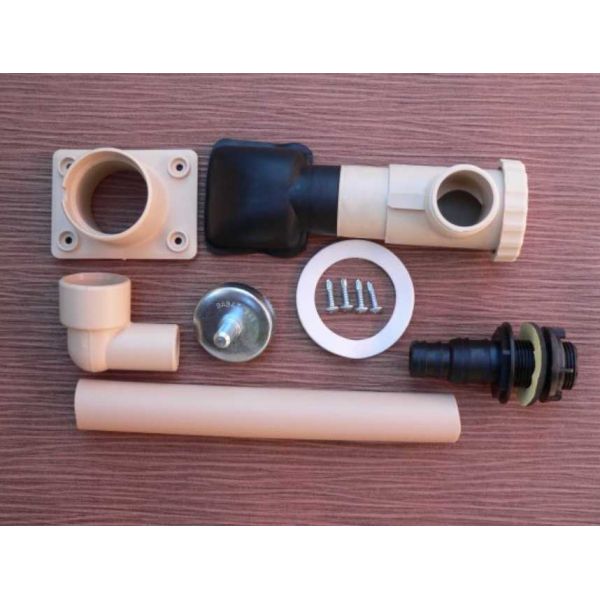 1 bride ou collier + 1 support d'écope + 1 écope + 1 bouchon + 1 coude de sortie 90° + 1 kit de montage (scie cloche + 4 vis + 1 joint torique + 2 joints mousse adhésifs) + 1 kit de raccordement à la cuve (raccord droit avec écrou et un tuyau de 20 cm)