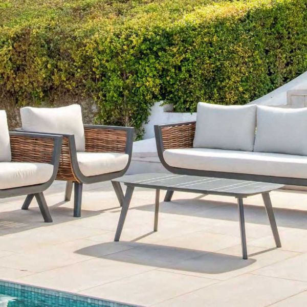 Salon de jardin sofa en aluminium et résine tressée Sudan (Anthracite et beige clair)