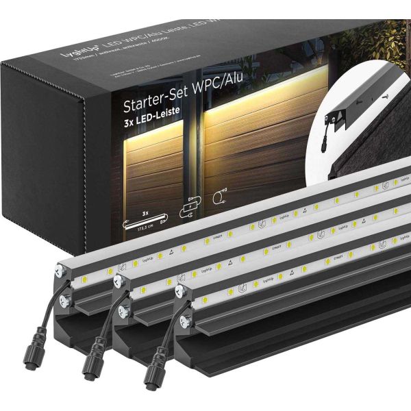 Set 3 barettes lumineuses transformateur et prolongateur pour clôture composite 1.73 m (Anthracite)
