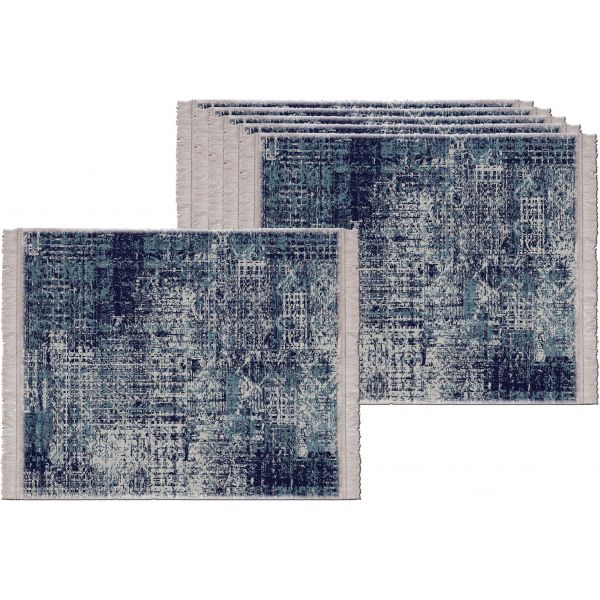 Set de table en vinyle 40 x 30 cm (Lot de 6) (Effet tissage bleu nuit)