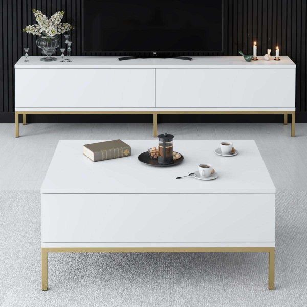 Table basse en agglomeré et métal Lord (Blanc et doré)