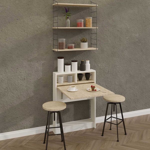 Table de cuisine pliante avec rangements Bracked (Beige)