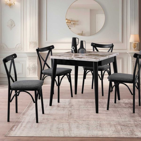 Table de repas extensible Totem (Noir, Blanc marbré)