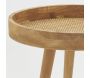 Pour un intérieur cosy et chaleureux, rien de tel que cette table d'appoint en bois naturel et rotin ! Un élément de décoration authentique et pratique ! La table est fabriquée à partir de pin naturel. Elle se compose d'un plateau rond en bois et cannage de rotin, ainsi que d'un piètement évasé d'inspiration scandinave. Livrée prête à monter. Idéale en table d'appoint ou bout de canapé, la table à pour diamètre 37,5 cm et pour hauteur 42,5 cm.