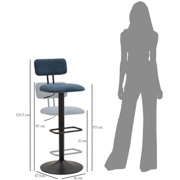 Tabouret de bar en métal avec dossier hauteur réglable (Noir et bleu)