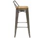 Tabouret de bar en métal laqué et bois d'orme huilé (Lot de 4) (Acier brossé)