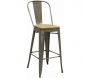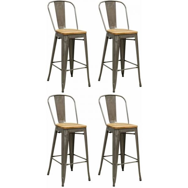 Tabouret industriel en métal et bois d'orme huilé (Lot de 4) (Acier brossé)