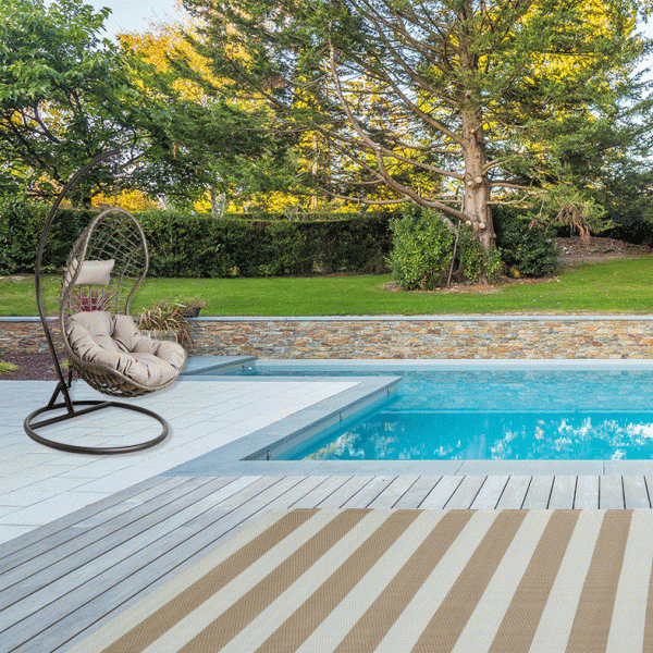 Tapis d'extérieur en polypropylène 120 x 180 cm (Rayures - Beige)