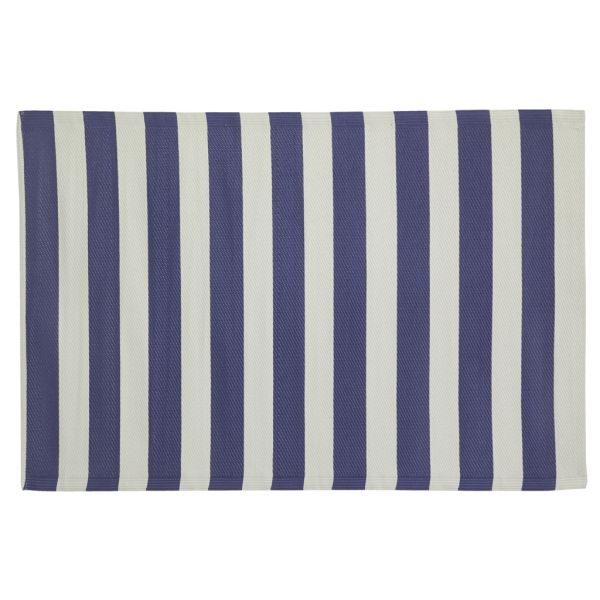 Tapis d'extérieur en polypropylène 120 x 180 cm (Rayures - Bleu)