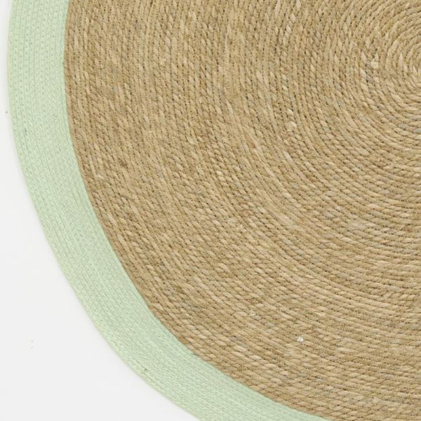 Tapis en jonc 120 cm naturel bordure colorée (Vert)